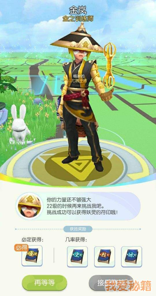 其实,对于符印而言,除了捉妖放妖的"绑架式"获取妖灵的方法之外,御灵训练其实是最好的办法。但是御灵训练往往有一个等级的限制,最低进入训练营的等级也要18级的。如果是想要进入木之训练师那里进行相关训练,还要22级的角色等级。