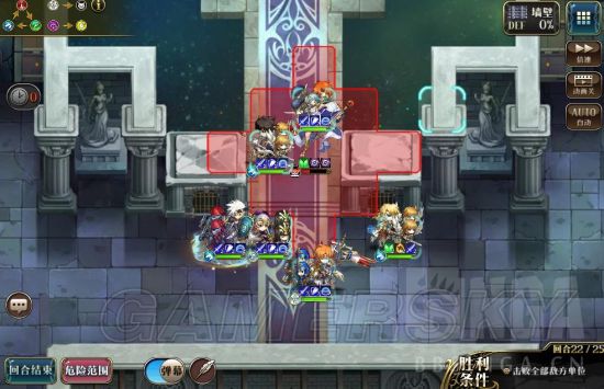 另外要注意的是,如果你完全堵住了女神所在的狭长通道,可能会导致下方天使绕路走浪费回合。遇到这种情况就改变一下站位。