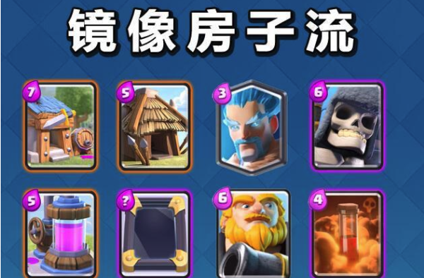 这套卡组中,比较创新的带上了镜像法术,在双倍圣水阶段可以连下两个野蛮人房子,进一步增加了爆发,不过操作的难度也相应提升了。要注意的是,房子流的强势期在双倍圣水阶段。前期即使被磨掉很多血,甚至被破路,也不要气馁,稳扎稳打是有翻牌机会的。