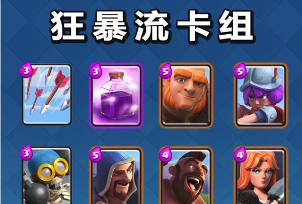 几乎所有的平民卡组,思路都是防守反击,这一卡组也不例外。但有一点小小的区别,狂暴卡组防守的目的,是要在清理敌方生物的同时积攒攻势,这就要求我们前期要卖一点塔的血量,法师和火枪要放在塔后,女武神要放在侧翼,争取在反推的同时,这些有杀伤力的兵种都是满血量。
