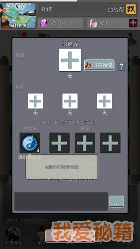 游戏中悟道峰是升级功法的地方,一开始把开光境的四个弟子都放进去。修行满了在进行替换,这里有一点就是送药不要忘记了。弟子功法大乘状态需要在悟道峰上面把主功法升级到12级,每个级别都会提升你弟子的修行级别上限。悟道峰中长老职位不是很重要新手可以不用管。