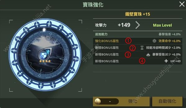 这宝珠,强化15的时候加到命中上,我要的属性是命中和冷却时间,洗哪个属性呢?那就洗其他没用的属性,3号或者4号属性。这宝珠能洗冷却CD吗?答案是可以的,但是只能将冷却时间2%洗到3%,只增加1%这没什么用,所以还是将3或者4号属性洗成3%命中,这就可以实现9%的属性了。但注意一点,你洗3或者4号属性的时候,就不能洗成冷却了,因为冷却时间已经在强化属性里面。(再不明白的话,可以点属性转换,然后点其中一个属性,看右边属性清单,有给看可以洗哪些属性)