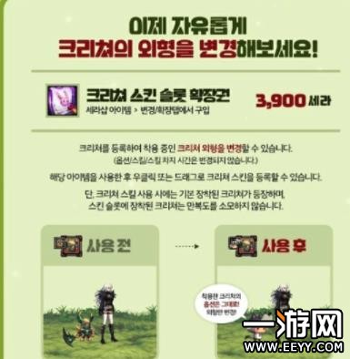 韩服3月更新宠物幻化槽:在保留当前宠物的属性的前提下,更改宠物外形。同光环幻化一样~商城购买,相信国服很快就会更新~(4月和武器幻化一起更新?),你会选择什么宠物幻化呢?
