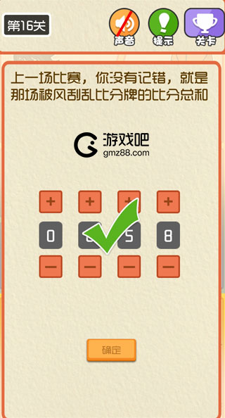 第16关答案:这一关问的是之前的比分总和,所以我们可以回到第14关看一下,正确的比分是23:35,所以相加的总和就是58。