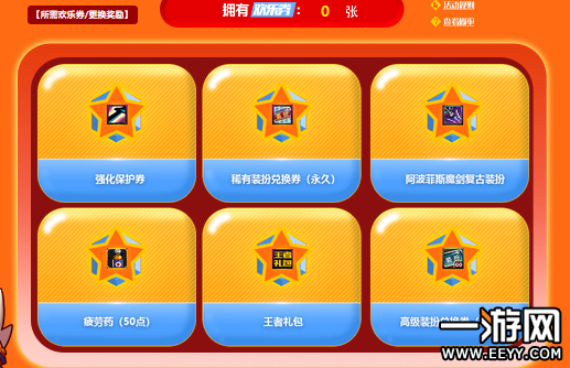 使用欢乐券进行抽奖,每天最多抽六次,每次抽奖消耗的欢乐券分别是1/3/9/15/27/45张。
