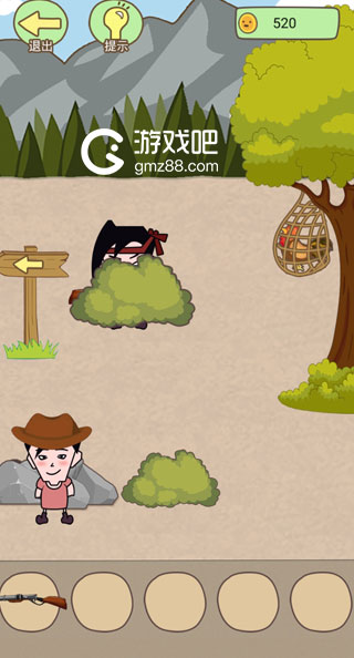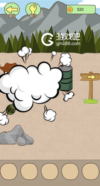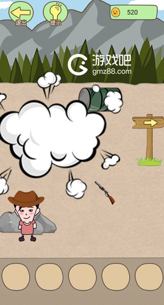 用手榴弹炸飞铁桶,得到枪;