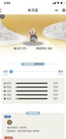 补习汪的一技能让他无论自身属性多差都能够上场,任何伤害都能够享受加成,非常万金油的一个辅助妖灵。