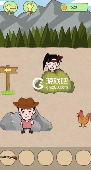 首先在第一个场景中,找到藏在草丛后面的枪;