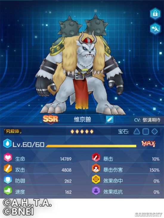 他是统治绝不会融化的永久冻土的极寒之地的兽人型究极体数码兽。体毛由冰的结晶样子变化而来,据说拥有与时之数码合金一样的硬度。
