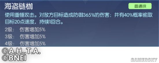 初始的伤害为防御力的365%,满级伤害是再提升25%,附带40%几率偷取20点速度的特殊效果,技能偷取几率受效果命中几率影响,单看这个技能维京兽并不强。