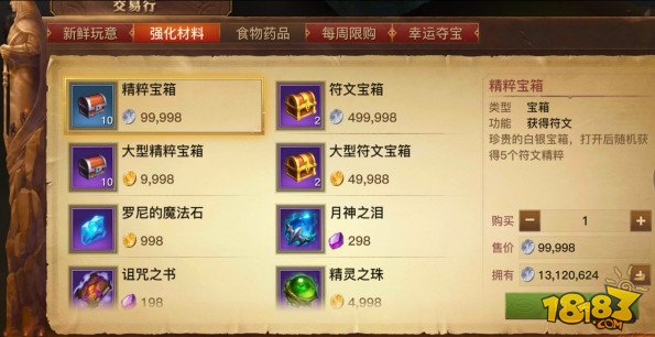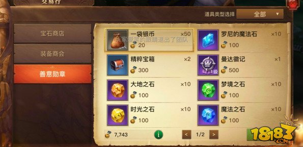 40级以前可以分解的紫装较少时的选择,这里呢并不是叫大家用善意勋章直接购买精粹宝箱,而是善意值买银币,然后用银币去每日商店强化材料里买十个精粹宝箱,这样比较值。
