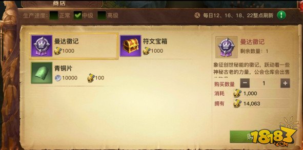 公会商店选择中级会有符文宝箱,一千贡献,非常超值,每天5个全部买光。