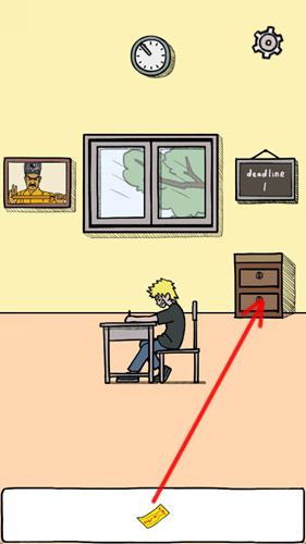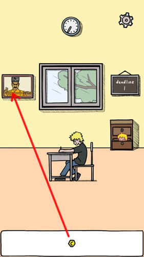 墙边柜子抽屉里有小鬼在丢纸团,当看到丢出的黄色纸团,我们在空中点击黄色纸团拦截下来。