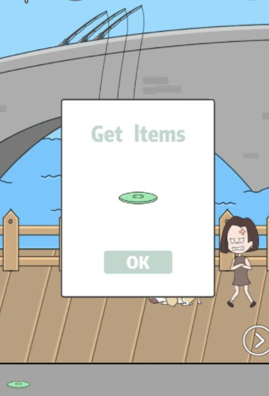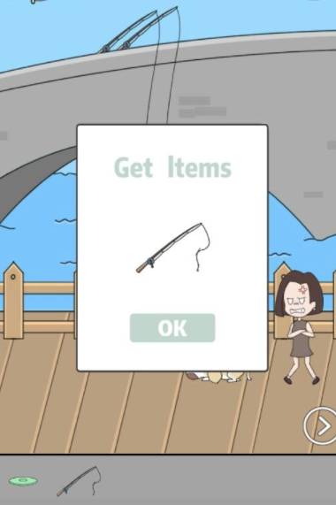 在第二页中,把两个物品组合,将男友从水中钓起,即可过关。