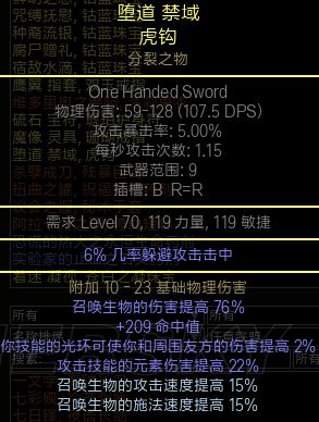另一个武器选择这个,加躲避,召唤生物伤害,召唤生物速度,我们有两天提供绿球,不需要盾牌了,还能节省一些天赋点