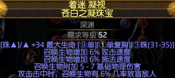 深渊腰带的珠宝1个选择这个,高生命+召唤攻击速度+致盲(尽量最高的6%),别的无所谓