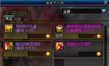 美味炖肉武器装扮自选礼盒(账号0/2),10个奖牌兑换;
