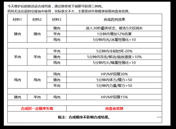 DNF最新开启了一个名为咕嘟咕嘟浓情炖肉的活动,玩家可以通过过关推荐地下城得到鸡肉、猪肉、羊肉等食材,然后进行烹饪。其中使用失败的炖肉会产出道具肉食爱好者奖牌,那么具体dnf失败的炖肉怎么获得呢?下面给大家带来DNF失败的炖肉配方。