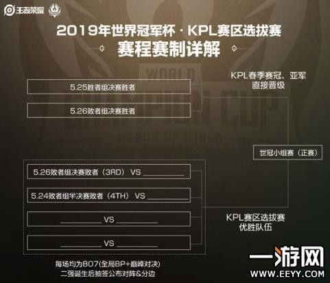 KPL赛区将有6个晋级世冠的名额。其中2019年KPL春季赛冠、亚军直接获得王者荣耀世界冠军杯小组赛(正赛)资格。