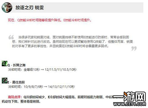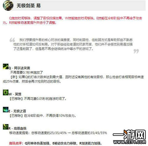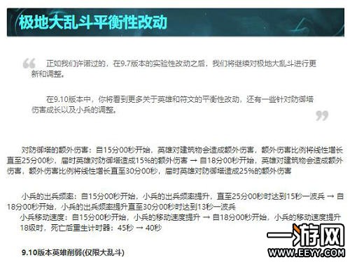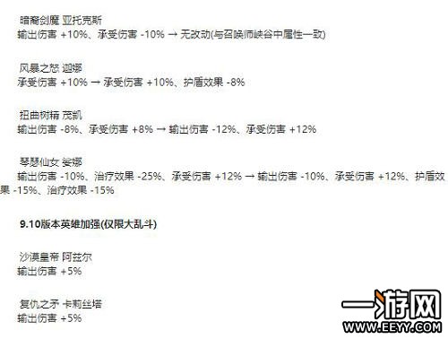 9.10版本内容比上个版本少,包含了对于一些热门英雄的改动,比如易、锐雯和薇恩,这些英雄跨越了不同的上手难度。另外我们跟进了上个版本中对索拉卡的改动,继续鼓励辅助队友的玩法,并且加强了一些我们迟迟未来得及改动的英雄。