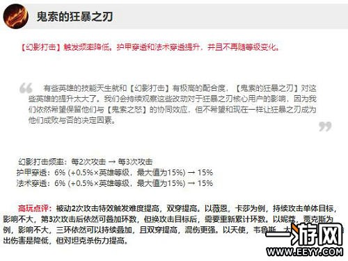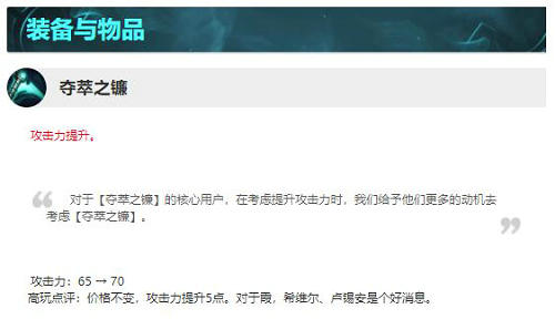 除此之外,我们对【征服者】以及【鬼索的狂暴之刃】做出了一些调整,其原因是它们表现得过于强力,使得核心使用者必须选择它们。