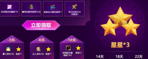 1、每日登陆游戏并在线30分钟即可领取对应礼包1分,单Q每日限领一次,累计在线天数即可领取相对应礼包,单Q限领1次。