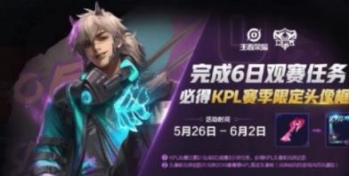 1、KPL比赛日累计完成6日观赛3分钟任务,必得KPL头像框兑换钥匙