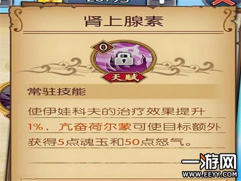 肾上腺素:伊万科夫的治疗效果提升1%(初始),亢奋荷尔蒙可是的目标额外获得5魂玉与50怒气。