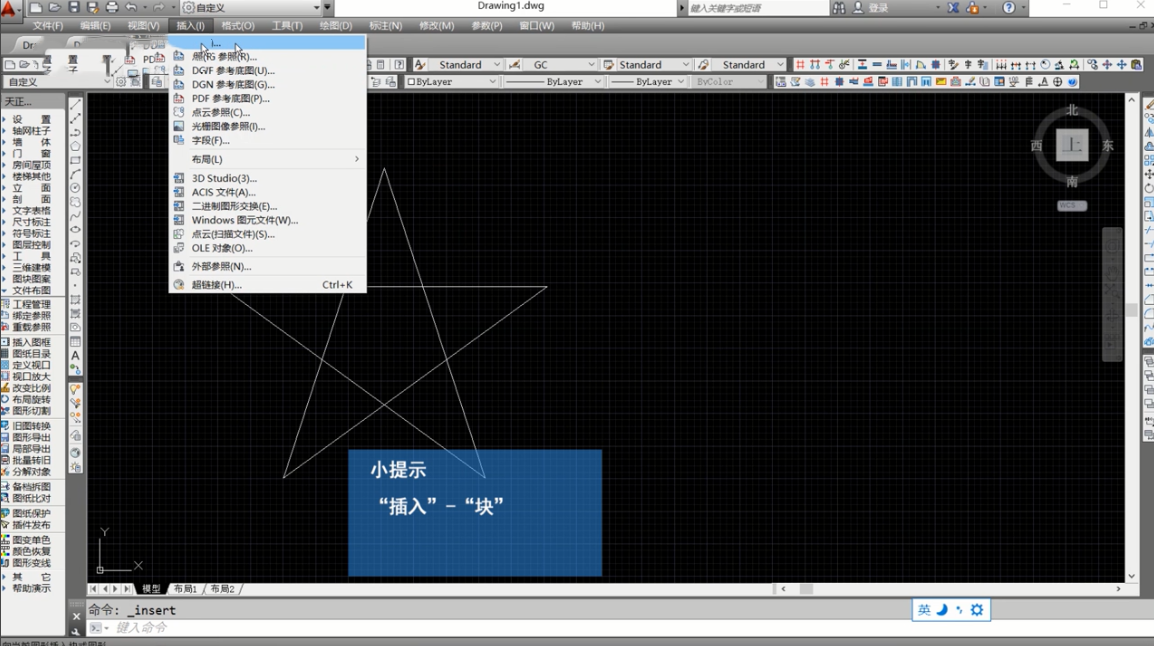 1、打开软件,进入经典绘图工作区,在菜单栏中选择插入,接着点击块,系统会弹出插入块窗口。