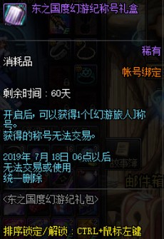 DNF幻游旅人怎么得到?目前在体验服当中新的礼包【东之国度幻游纪礼包】出售,玩家购买后打开可以得到【东之国度幻游纪称号礼盒】,再次打开后就能得到这个【幻游旅人】称号了。