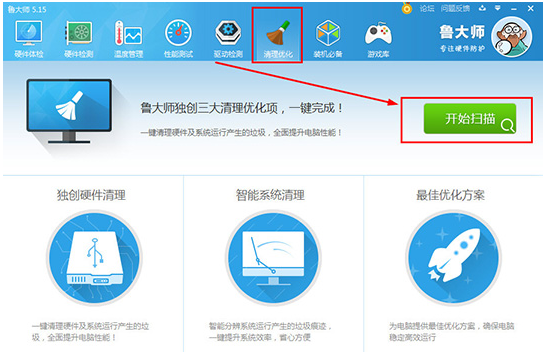 电脑硬件及系统运行时产生的**过多,也会导致温度过高,进入鲁大师的“清理优化”栏目,点击“开始扫描”,扫描结束之后就可以开始清理,清理完成,*能提高电脑运行速度: