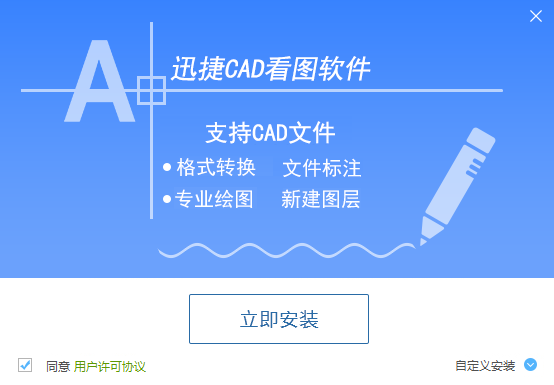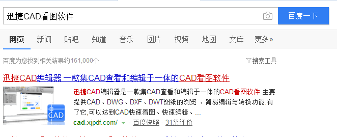 1、打开浏览器并且搜索:迅捷CAD看图软件,找到下载资源进行下载,下载完成后完成自定义安装。