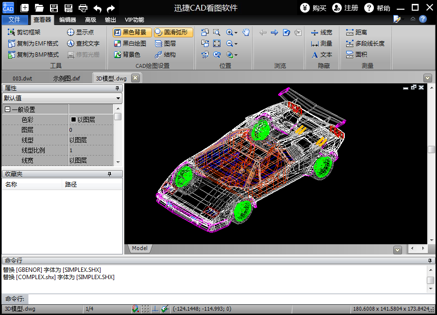 3、然后我们就可以打开软件,此时软件中默认自带了一个CAD车型文件,此时我们可以将需要查看的CAD文件导入进去。进行查看即可。如果你没有CAD文件也可以自己建立一个图层来设计CAD文件。