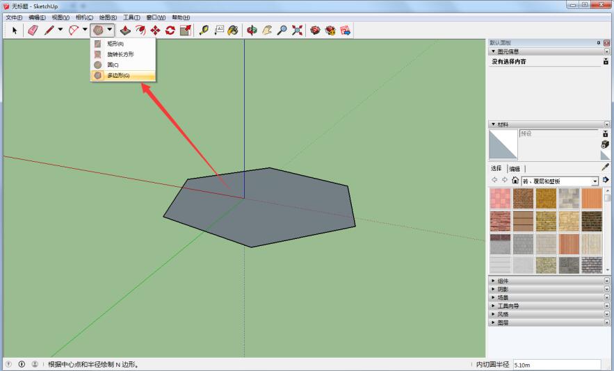 1、先打开你的草图大师用点击形状工具,选择多边形,在图中先绘制出一个多边形。如图: