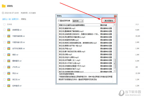 3、觉得当前的语音包还不够过瘾,不要急,,将会出现适合各种游戏类型的语音包,大家可以选择下载自己需要的那一种,下载完成后,只需要将MP3格式文件拖到万能变声器电脑版根目录下的语音包文件夹,重新启动软件即可完成添加,如下图所示: