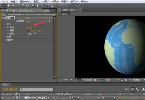 这刻可以看到已经变成球体了,把半径200改成160,让图片适应一下页面,这样比较好看。
