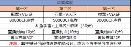 斗鱼枪王堂活动时间是5月20日至6月30日,活动期间内的每周日、周一、周二报名的玩家可以参加当周的枪王堂竞技比赛,其余时间报名的玩家可以参加下一周的竞技比赛。每周前五的玩家就可以参加月决赛。由于本次枪王堂活动的主题是狙击枪,所以参赛玩家只可以使用狙击枪,周赛玩家玩家可以使用近身武器。周赛的前三名可以获得游戏点券以及专属武器及喷涂。月决赛前三名除了周赛奖励之外更有千元现金大奖。