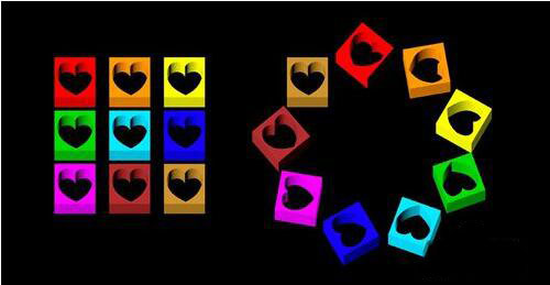 5、同样,我们也给这九个模型分别附加不同颜色的材质。完成后,点击【渲染】,将我们阵列好的模型渲染出来,这样我们的模型阵列就全部做好了。