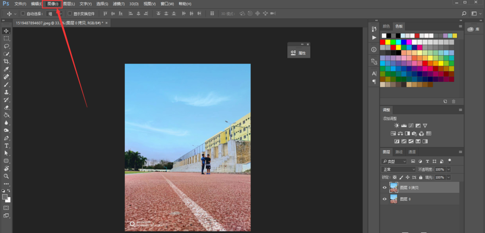 打开Photoshop软件,导入一张图片素材,先复制图层,再点击菜单栏的【图像】——【图像大小】,