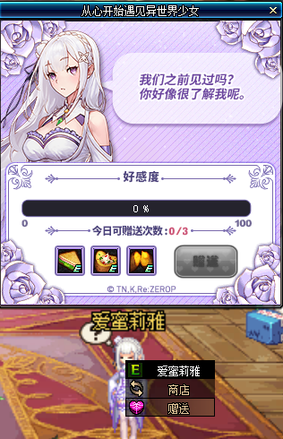 好感度满了以后可获得爱蜜莉雅的真心,真心可兑换爱蜜莉雅的爱慕称号。