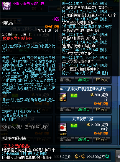 DNF剑影直击顶峰礼包内容和DNF小魔女直击顶峰礼包内容如上,礼包将于23号同新职业一同更新上架,届时玩家们可以从游戏客户端内选购。