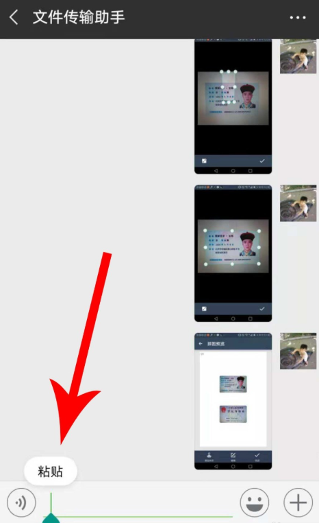 复制之后,打开微信,点击“文件传输助手”,长按输入框、点击“粘贴”按钮,然后就能发送文字了。