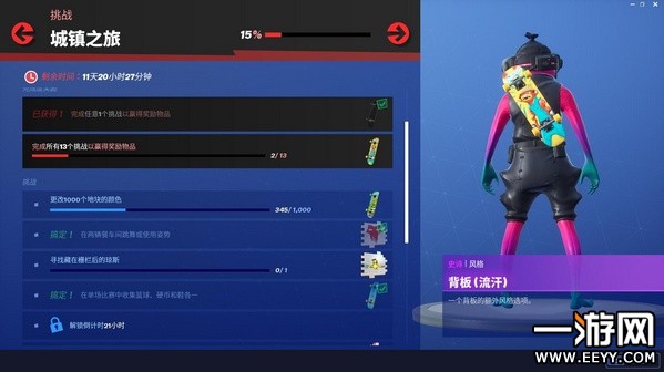 完成任意13个挑战以赢得奖励物品——滑板背饰