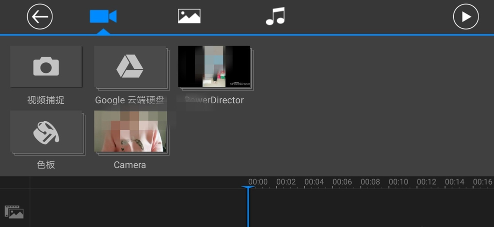 打开威力导演APP,按照步骤添加手机视频,如图,
