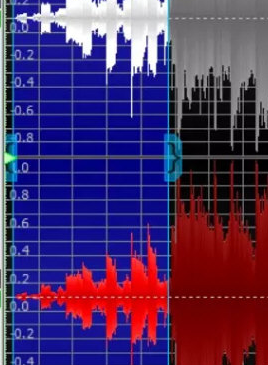 2、点击确认后,会回到原始界面,你可以发现波的高峰部分变矮了,这是处理起了效果,音轨发生了变化。