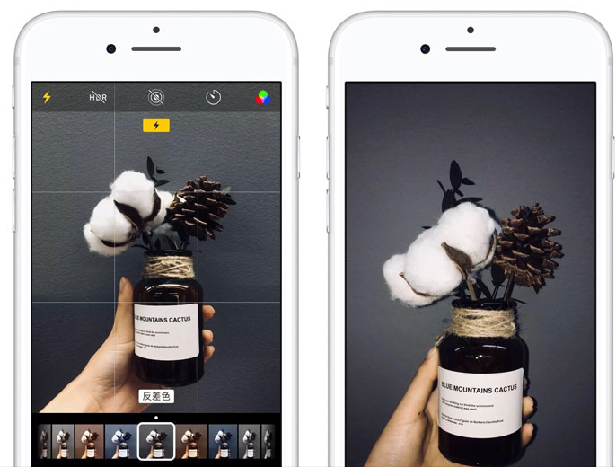 拍摄方法:关闭HDR,开启「闪光灯」,选择「反色差」滤镜,建议在较昏暗的灯光环境下进行拍摄。