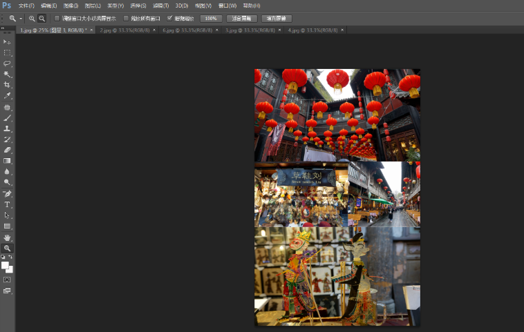 先准备4张图片素材,然后打开Photoshop软件,导入第一张图片,