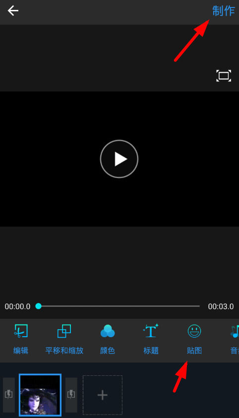 进入视频编辑页面,如此一来,大家就可以利用文字或者贴纸来遮挡视频水印了!