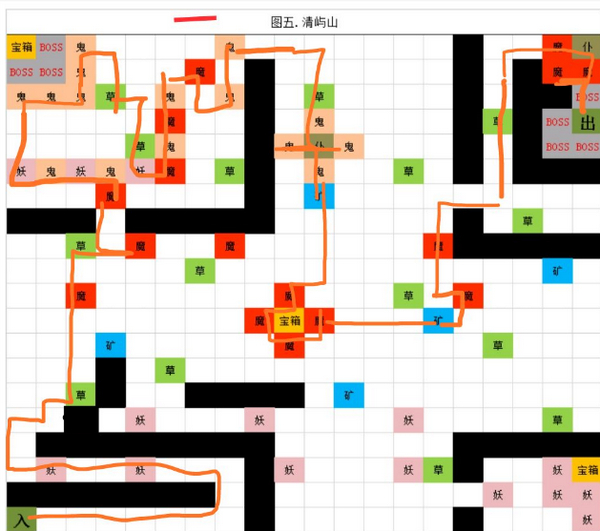图5主要用来刷灵石,还有材料,如果打不过boss,那么这么刷会亏,所以打不过boss建议可以从中间宝箱刷到右上角结束。