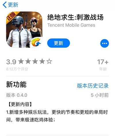 和平精英游戏中点更新按钮,跳转到苹果商店后,和平精英的游戏依然显示【打开】,而不是【更新】按钮。